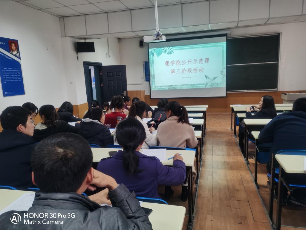 为加强教师间的教学交流,调动教师的教学积极性,发挥优秀课程教学的示范作用,beat365于12月3日下午,在南308教室,举行了本学期公开示范课第三阶段活动。本次公开示范课共有5名副高级职称的教师主讲,全体教师参与了交流研讨。