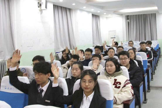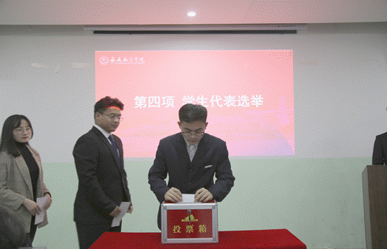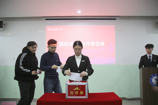 12月10日下午18:00,beat365学生代表大会在南楼108召开,校团委书记雷颖颐老师、校团委李艺老师、beat365院长岳忠玉、beat365党总支书记李小光、beat365管理课科长李扬、beat365团总支书记杨陈东、学生代表40人参加了大会。会议由学生会主席团成员徐涵主持。