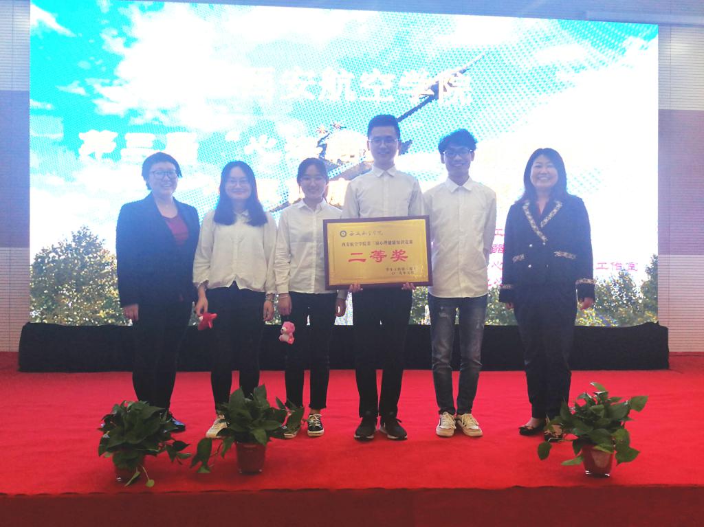 决赛形式分为必答题、60s限时答题、抢答题、情景分析题和闯关题五个环节。在前四个环节中,各学院激烈角逐,比分紧紧咬住,比赛从一开始就处于白热化状态。在此期间,我院学生凭借丰富扎实的知识储备一直稳居前三名。最后一轮闯关题中,各学院比分明显拉大,紧张激烈的答题氛围也使人心起伏跌宕。我院学生在选择是否闯关最后一题时,从主持人到观众,全场沸腾,希望我院学生选择继续闯关,可贵的是我院选手在短短十秒内,分析讨论比赛形势后决定采取保守方式作答,放弃闯关,最终获得比赛第二名,以三分之差惜败飞行器学院代表队。
