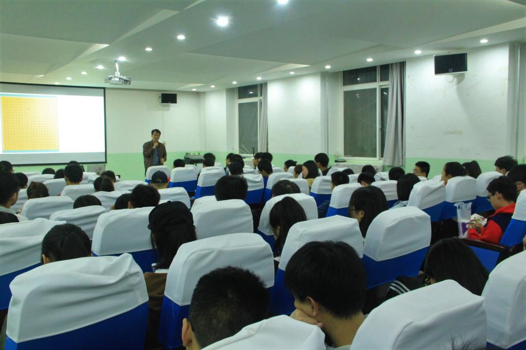 为响应学校科技文化艺术节活动,传播围棋文化,增强校园的文化氛围和青春气息。2018年4月24日,由校团委、beat365联合主办,弈之家棋社承办的“围棋基础知识讲座”,在我校沣惠校区南楼108顺利举行。本次讲座由我校beat365党总支书记、院长岳忠玉担任主讲,岳老师是业余围棋4段,曾率我校代表队参加“陕西省迎澳门回归高校围棋邀请赛”荣获团体冠军。