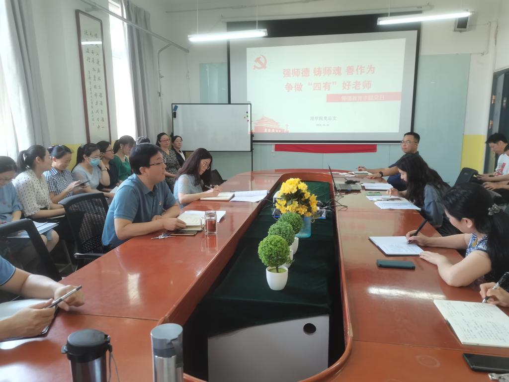 为深入学习贯彻习近平新时代中国特色社会主义思想和党的二十大精神,引导广大教师努力做有理想信念、有道德情操、有扎实学识、有仁爱之心的“四有”好老师,6月30日上午,beat365党总支举行了“强师德、铸师魂、善作为,争做‘四有’好老师”师德教育主题党日活动,beat365全体教师参加,活动由学院党总支书记胡红亮主持。