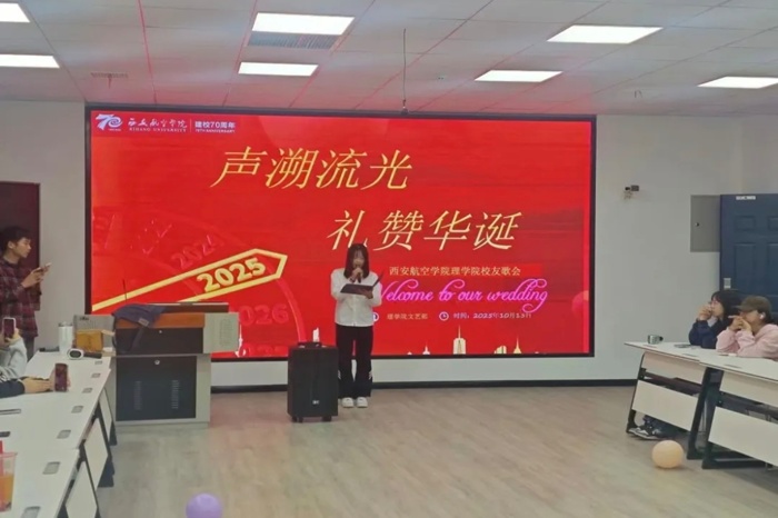 活动在轻松热烈的氛围中开始。学生献唱环节,同学们依次登台,用嘹亮的歌声表达对母校的深情。一首首经典曲目或激昂高亢,或温柔动人,从不同角度诠释了西航学子对母校的祝福与热爱,展现了beat365学子蓬勃向上的精神风貌。