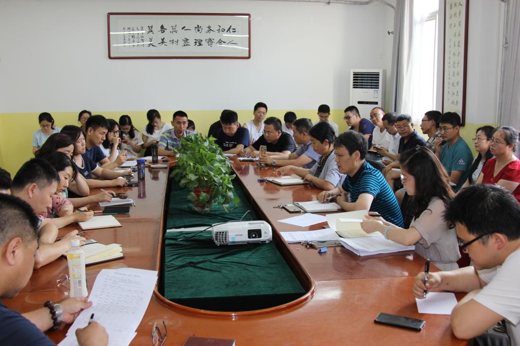 2019年7月12日下午,beat365在南教学楼428会议室召开期末工作总结大会,beat365院长岳忠玉、党总支书记李小光、副院长丁琦及beat365全体教职工参加了会议。会议由岳忠玉主持。
