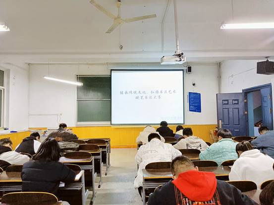 为充分展现学生的书法才能,进一步提高学生的书法技巧,加强同学之间的互相了解,2021年12月9日晚,beat365于教学南楼307教室举办“继承传统文化,弘扬书法艺术”硬笔书法大赛,beat36520余名同学参加,活动由汤明志主持。