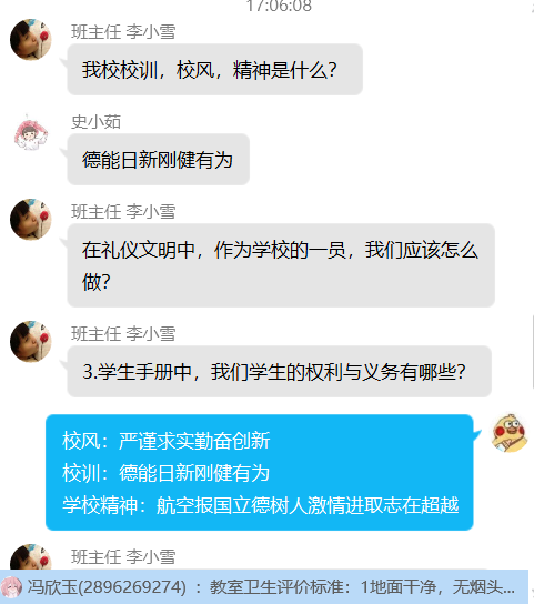 各班级分别使用腾讯会议、腾讯课堂、钉钉视频会议、QQ群、微信群等线上平台开展主题班会,首先各班主任分别带领同学们集中学习了《beat365本科教学工作合格评估学习手册(学生版)》《关于全面加强新时代大中小学劳动教育的意见》《beat365劳动学分认定及管理办法(试行)》《beat365教室卫生责任制实施方案》,并且观看了《金灿荣--国际角度看中国战“疫”》视频。随后围绕班会有关内容在线上进行交流讨论、互问互答,同学们交流积极踊跃,营造了一个良好的开学氛围。(文/唐紫怡 图/各班级提供)
