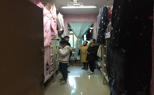 同时,老师们建议同学们要勤通风,多喝水,勤清洗衣服、被子,养成良好的卫生习惯,并提醒同学们用电安全,让同学们添衣保暖注意身体健康。直至所有宿舍都符合要求后,班主任们才离开。