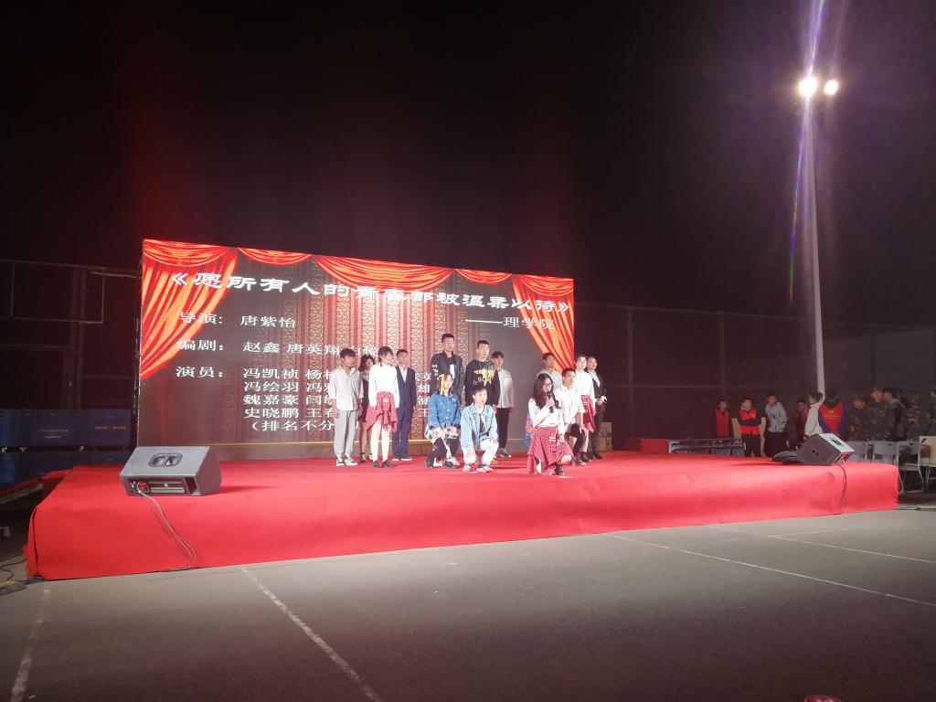 此次在阎良校区灯光球场演出开始前半个多小时,现场就已近开始热闹起来,同学们自带的凳子摆放整齐。演出正式开始的时候,场地里座无虚席,全场爆满。在演出的进行中,场内也能保持较为良好的纪律。为时两个半小时的演出,观众们和演员们一起,都坚持到了最后一刻。在比赛结束分数揭晓时,全场更是爆发出一阵阵欢呼声。最终,我院《愿所有人的青春都被温柔以待》紧扣社会热点话题,呼吁同学们抵制校园暴力,学会关心关爱同学,荣获二等奖。