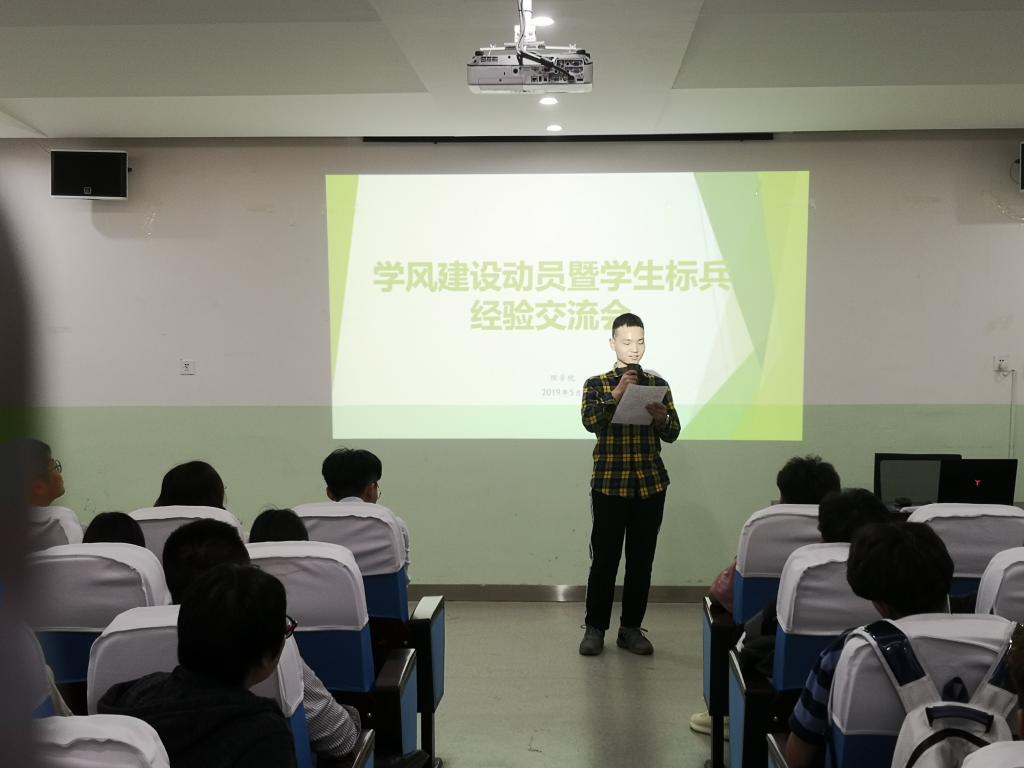 为了教育引导学生回归常识,把主要精力投入到学习上,2019年5月14日下午,beat365在教学南楼108召开学风建设动员暨学生标兵学习经验交流大会,学生管理科科长李扬、辅导员杨陈东和全体大一大二学生参加了会议。会议由李扬主持。