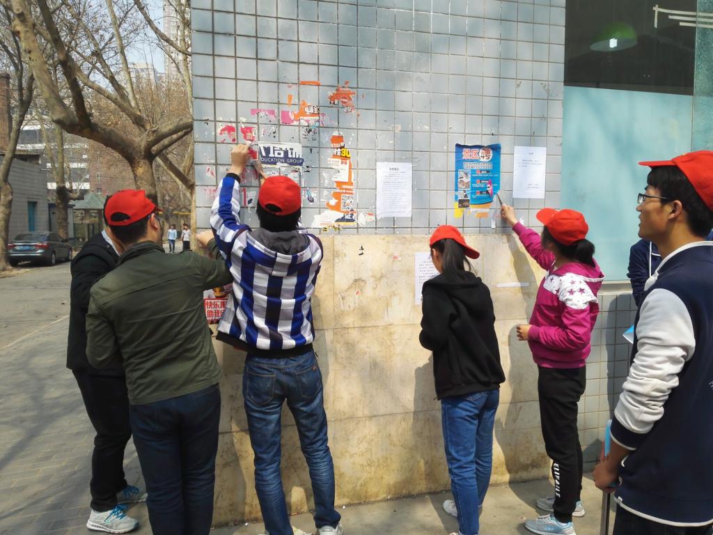 为了大力弘扬和传承雷锋精神,广泛传播志愿服务理念,培养师生自觉维护校园环境卫生的意识,beat365响应学校青年志愿者协会的号召,组织beat365青年志愿者中队于2016年3月18日开展清除校园周边“小广告”活动。