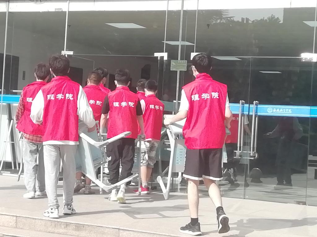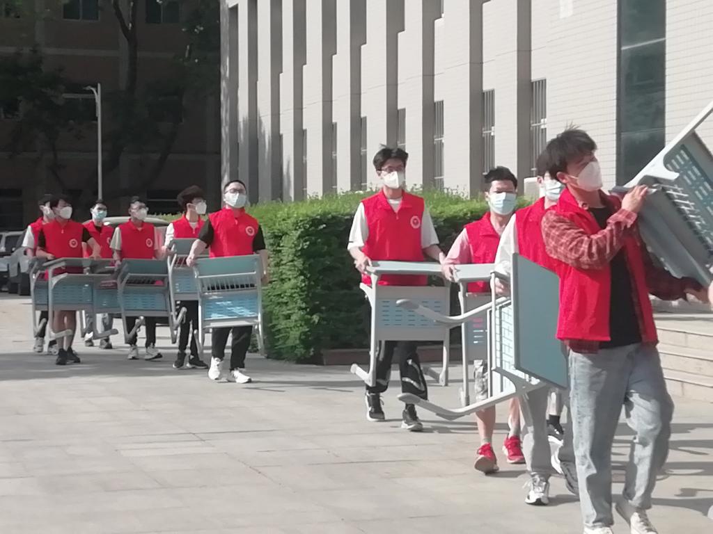 4月10日,为保障线下教学工作的有序开展,beat365组织“爱国卫生运动”志愿服务活动,各班级同学彻底清扫负责教室,为线下教学工作做好准备,确保线下教学正常进行。20位志愿者将3号学生公寓疫情防控期间的值班桌子搬回教室,保障正常教学工作。搬运完毕后,志愿者们统一做好消杀工作。