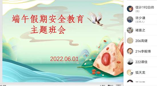 2022年6月1日,beat365各班级通过线上线下相结合的方式组织召开了端午节假期安全教育主题班会。班会由各班主任主持。