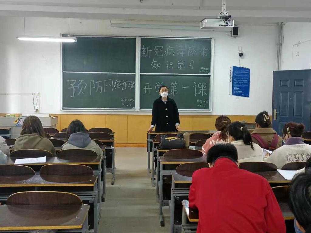 新学期,新气象,是全新的起点。各班主任向同学们介绍了新学期日常管理方案和各项制度,详细解读了“学习领航”优良学风提升计划,鼓励同学们在学习上取得新的成就,认真复习,踏实耐心备考四六级考试。同时,各班主任鼓励同学们学习之余积极参加校内的各项活动,丰富课余生活,全面发展,提升个人综合素质。随后班主任跟同学们分析了学校历年网络电信诈骗典型案例,教育学生保护财产安全,谨防上当受骗,并且组织各班同学收看了2023年征兵宣传片,鼓励有志青年积极投身国防建设。