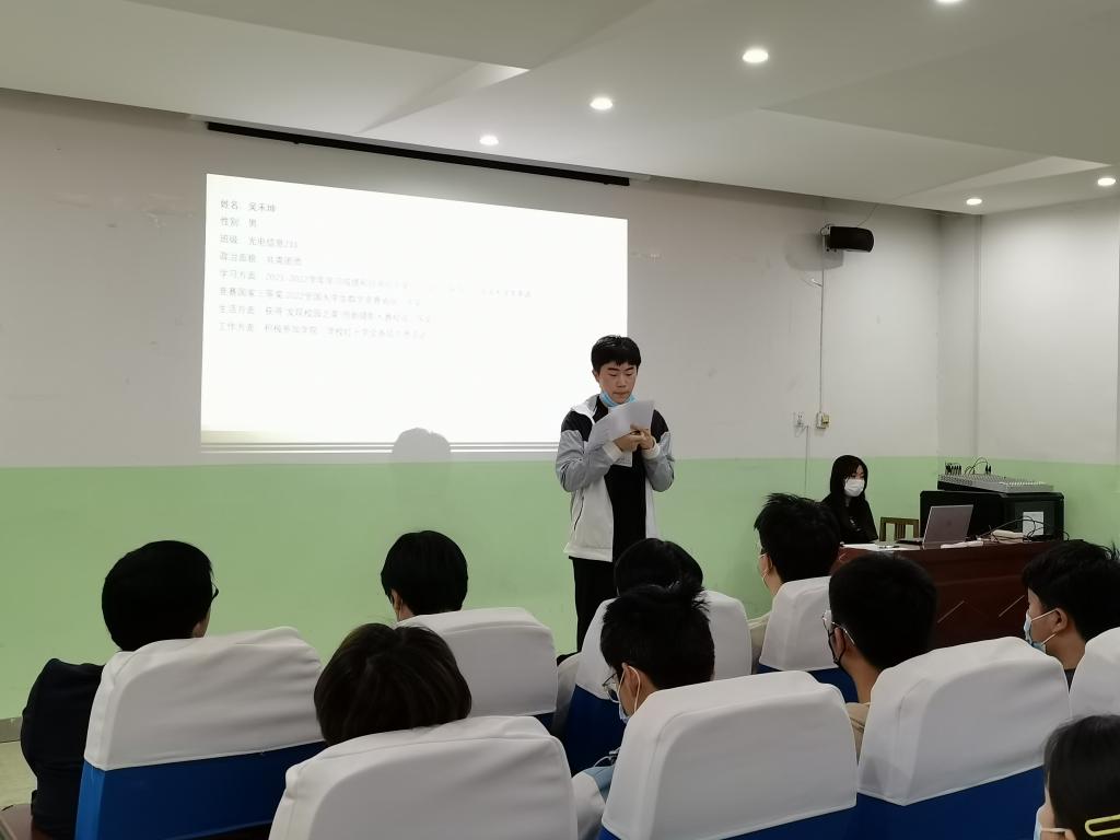 大会首先表彰了2021-2022学年国家励志奖学金获得者。张岩从学习成绩、学科竞赛、活动参与等方面总结了一年来大二年级的学习生活情况,并就升入大三后在后期要以备考通过英语四级为目标,积极参加各类社会实践、社会生活,不断优化综合素质做了进一步要求。