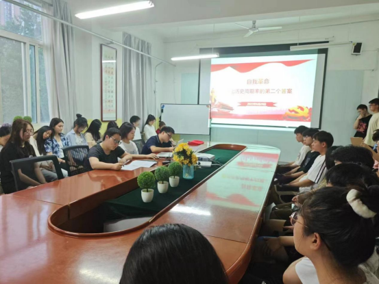 为推动学习贯彻习近平新时代中国特色社会主义思想主题教育走深走实,6月29日晚beat365学生党支部书记李扬为全体学生党员讲授党课“自我革命-跳出历史周期率的第二个答案”。