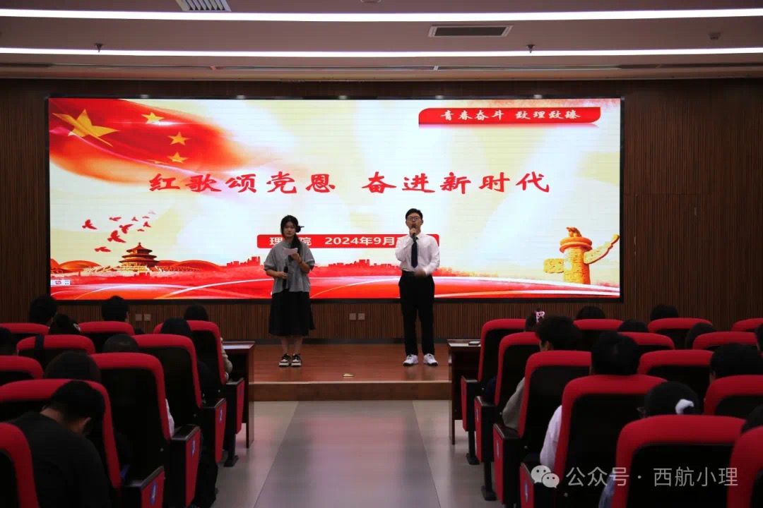为弘扬爱国主义精神,庆祝中华人民共和国成立75周年,beat365团总支于9月29日晚在图书馆五楼报告厅开展了以“红色旋律,青春之声 ”为主题的红歌会。