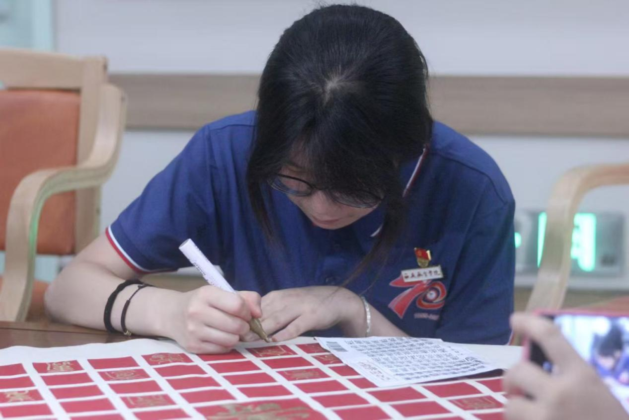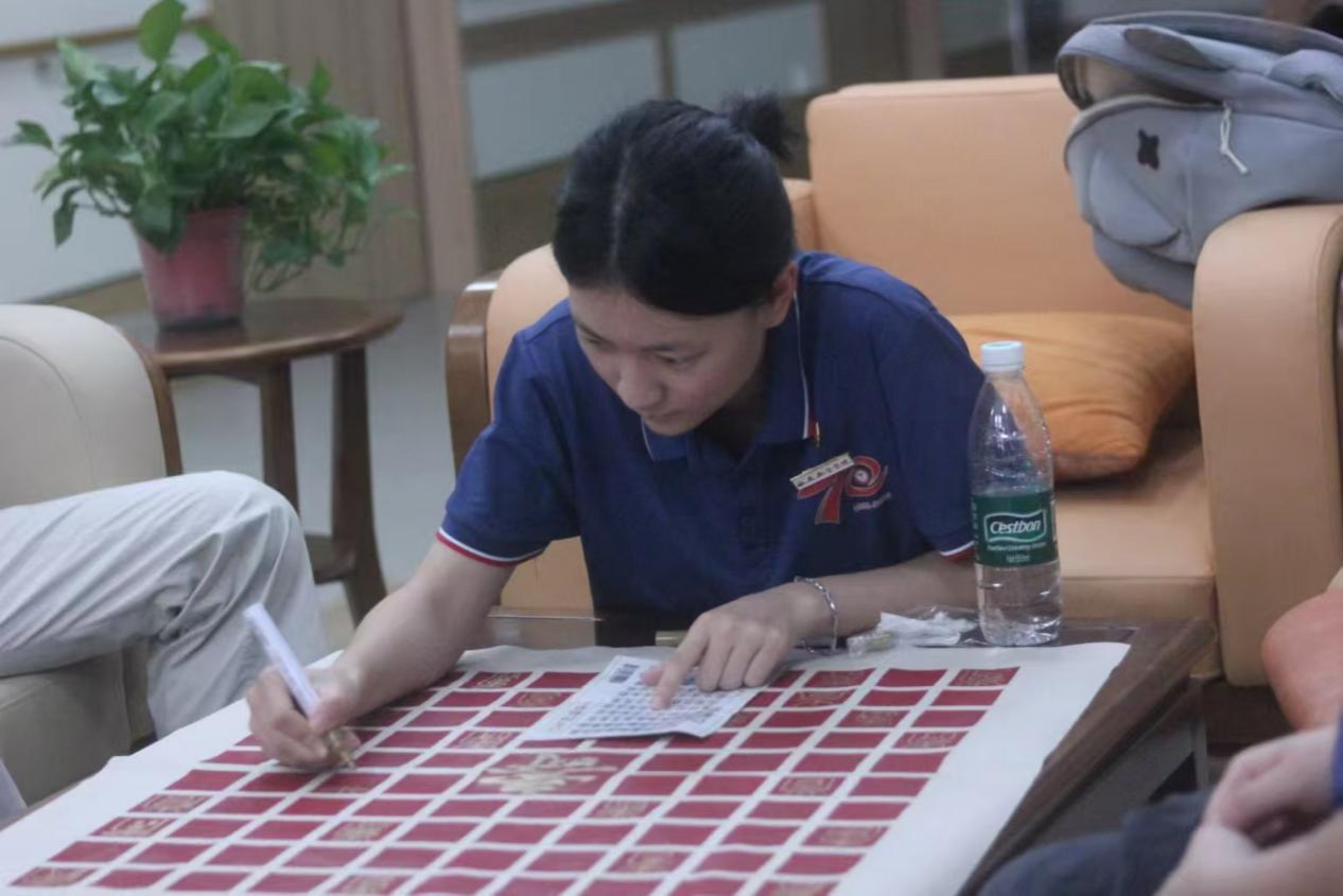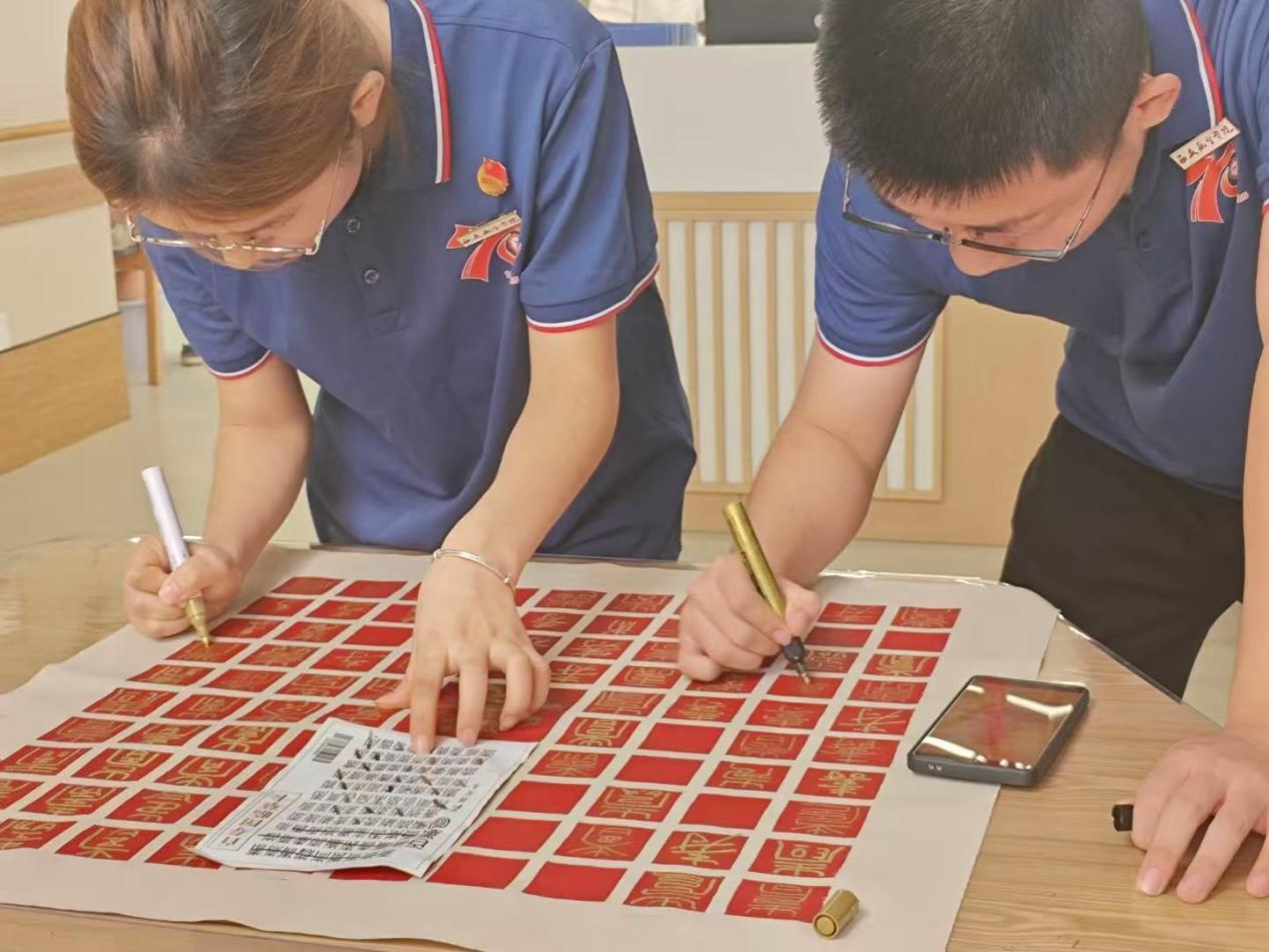 活动结束时,大家看着这幅凝聚着众人心血的百寿图,心中满是成就感。当青春的笔锋遇上岁月的笔迹,共同绘就的不仅是一幅饱含祝福的画卷,更是一场跨越代沟的情感共鸣与一场传统文化在现实土壤中焕发新生的温情仪式。这既是“青春伴银龄”的生动实践,亦是文化传承在当代社会流淌的温暖清泉。(文/光电信息244 王泽轩 图/光电信息234 陈思雨 初审/学工办 曾妍 终审/胡红亮)