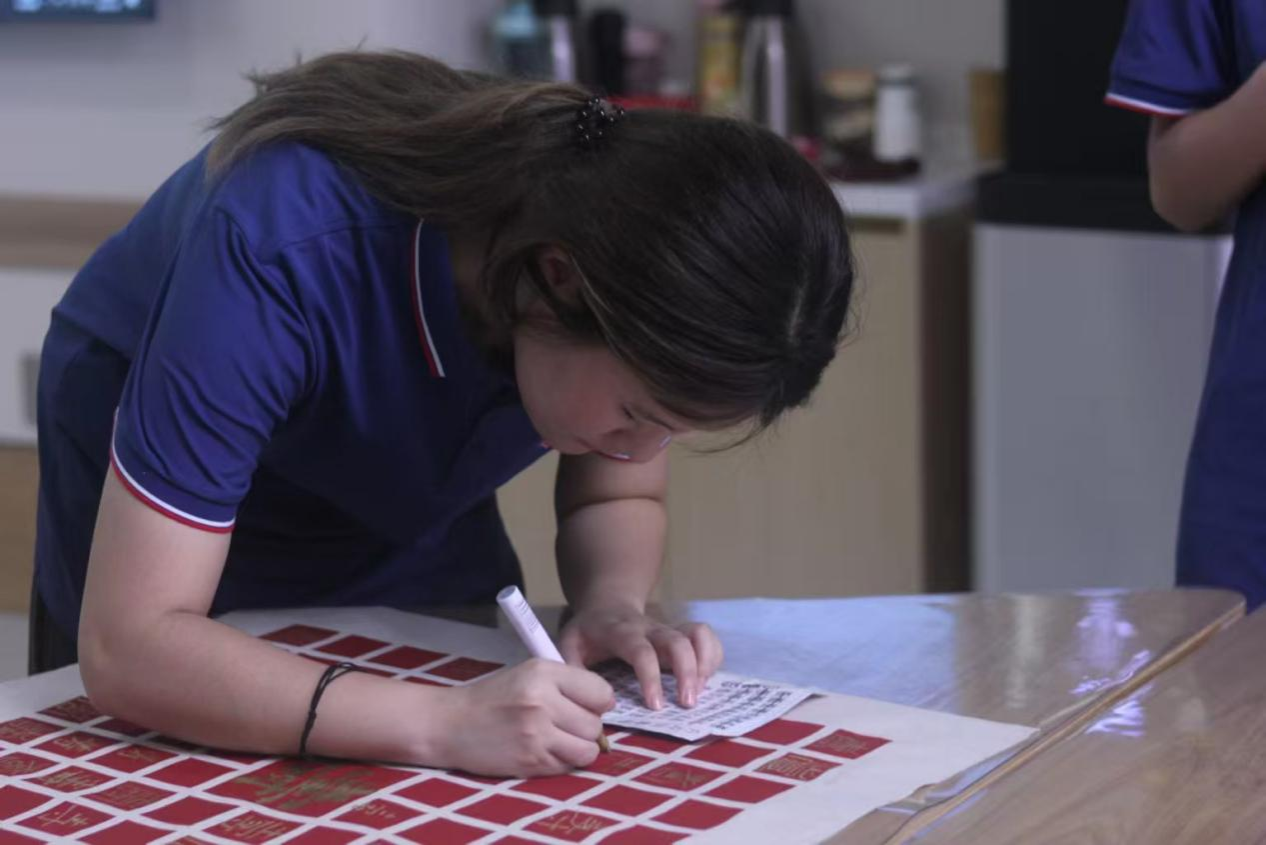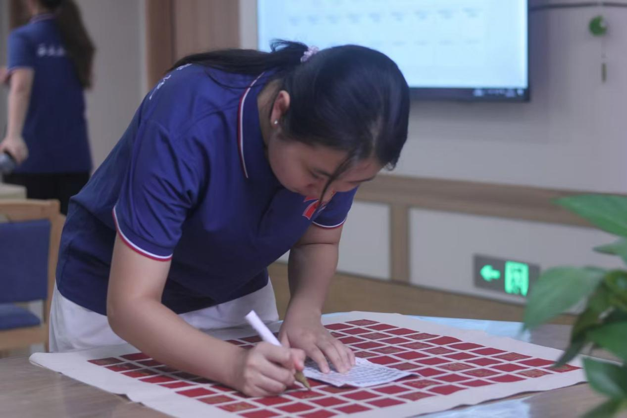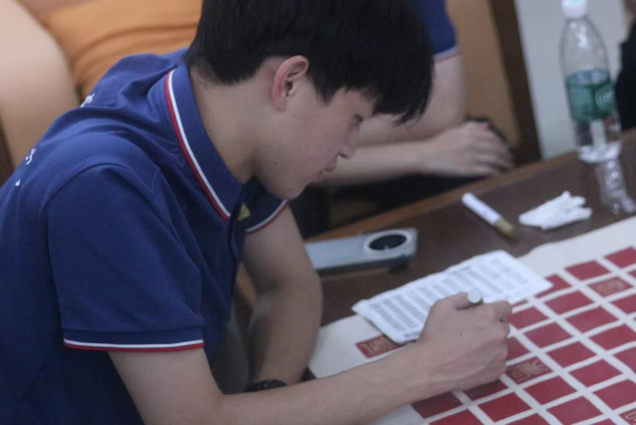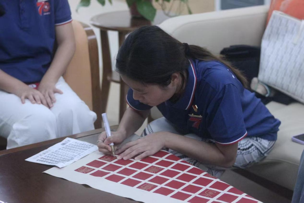 活动结束时,大家看着这幅凝聚着众人心血的百寿图,心中满是成就感。当青春的笔锋遇上岁月的笔迹,共同绘就的不仅是一幅饱含祝福的画卷,更是一场跨越代沟的情感共鸣与一场传统文化在现实土壤中焕发新生的温情仪式。这既是“青春伴银龄”的生动实践,亦是文化传承在当代社会流淌的温暖清泉。(文/光电信息244 王泽轩 图/光电信息234 陈思雨 初审/学工办 曾妍 终审/胡红亮)