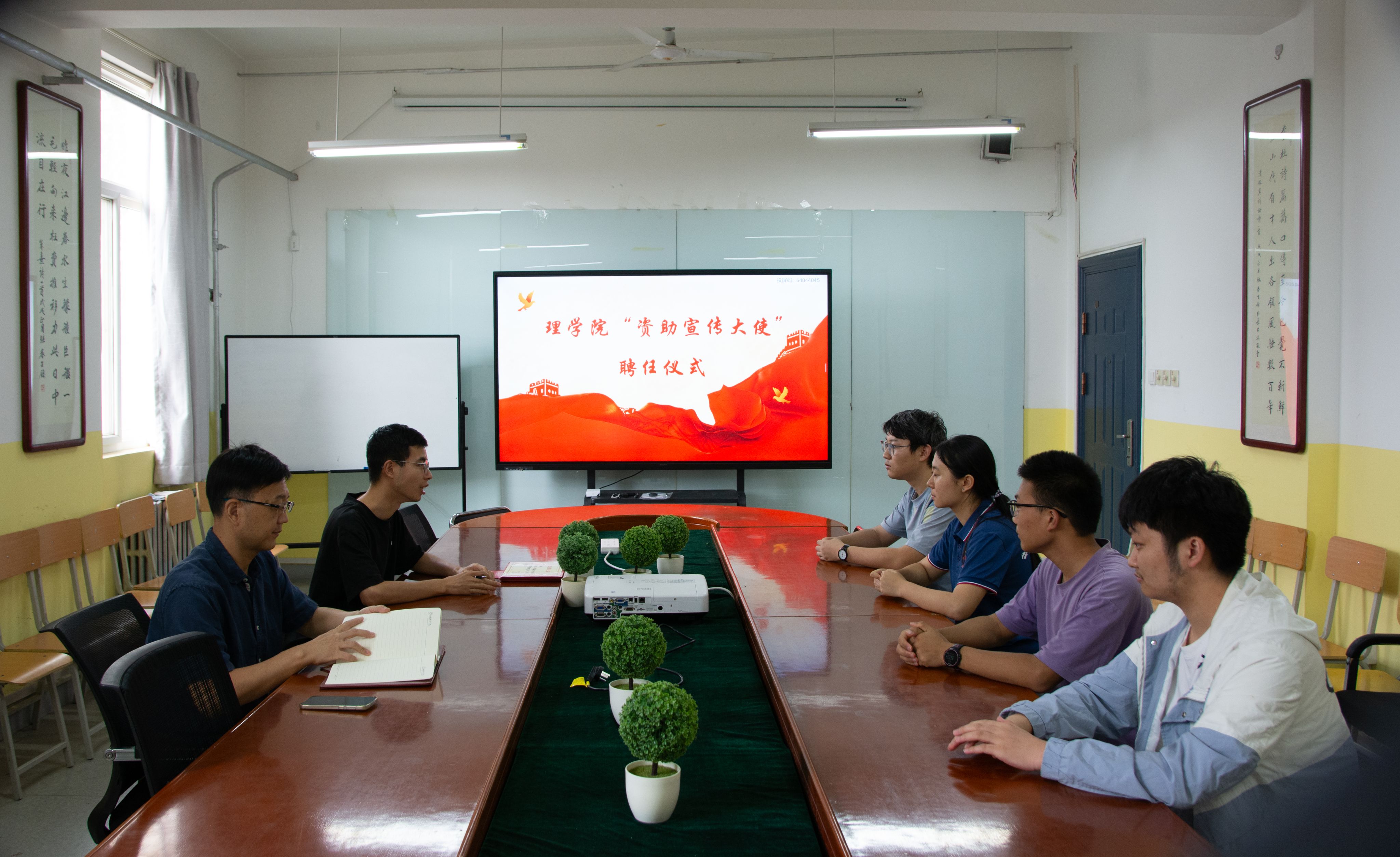 为深入贯彻落实国家资助政策,发挥优秀学生榜样引领作用,推动资助育人工作做深做实,7月9日,beat365在莲湖校区教学南楼428会议室举行“资助宣传大使”聘任仪式暨资助育人工作推进会。beat365党总支书记胡红亮、辅导员张岩和学生代表参加。