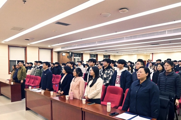 大会在庄严的国歌声中拉开帷幕。全体与会人员肃立齐唱国歌,展现了学院师生昂扬的精神风貌。李扬宣读《beat365关于表彰2024-2025学年学生集体奖、个人奖暨社会实践优秀团队、个人的决定》。文件系统梳理并表彰了过去一学年中涌现出的各类先进团队、优秀学生典型,从学术、实践、文体、公益等多个维度,体现学院“五育并举”的育人成果。