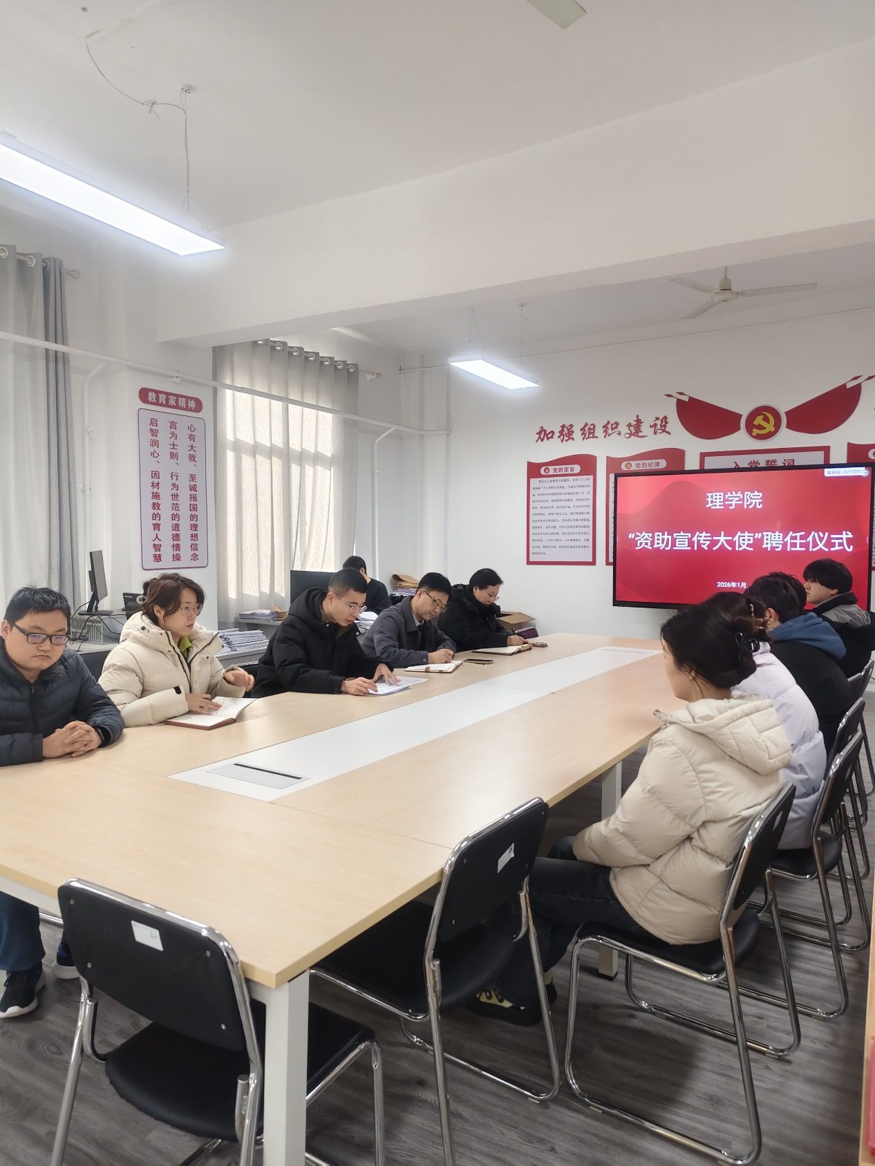 为进一步推动学生资助政策走深走实,让助学温暖直达有需要的学子,1月14日,beat365在南楼433室举办“资助宣传大使”聘任仪式。beat365党总支书记胡红亮、学生工作办公室主任李扬、辅导员张岩、王向阳、曾妍等和学生代表参加。