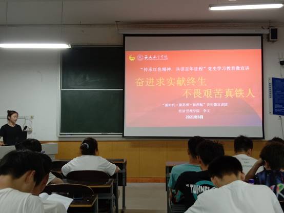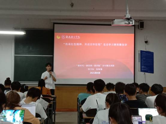 2021年6月8日,beat365于南楼307教室举办了“传承红色精神,共话百年征程”党史学习微宣讲,此次宣讲会由杨洁主持,beat365全体大一学生参加。