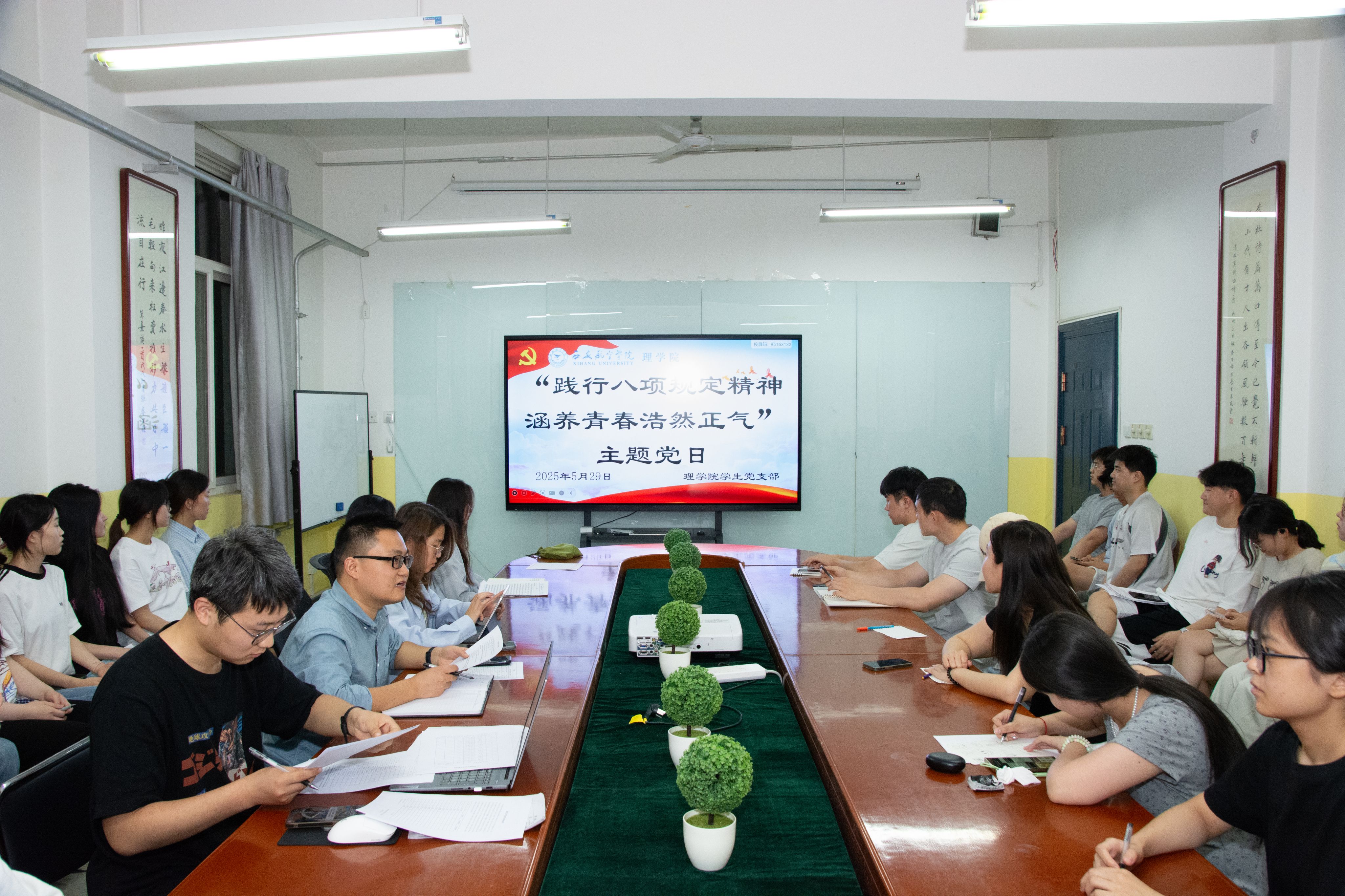 为进一步推进深入贯彻中央八项规定精神学习教育走深走实,激发青年党员的使命感与责任感,beat365学生党支部于5月29日在南428会议室开展了“践行八项规定精神,涵养青春正气”主题党日活动。