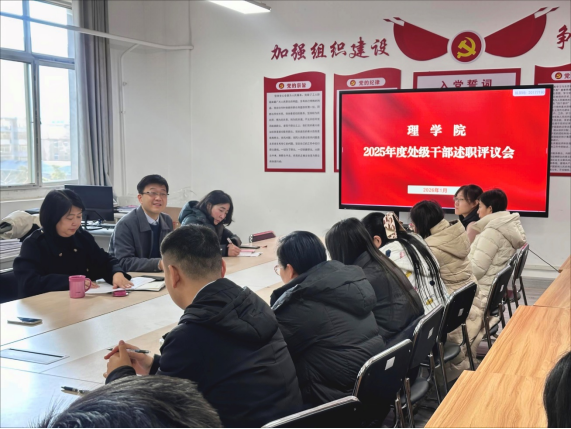 为全面总结2025年度学院处级干部履职尽责情况,客观评价工作成效,进一步加强干部队伍建设,明确新一年工作方向, 1月6日下午,beat365在莲湖校区南433室召开了处级干部2025年度述职评议会。学院领导班子成员、全体教职工参加了会议,会议由党总支书记胡红亮主持。